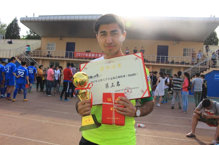 随着主裁判的一声哨响,北理工普通生校队最终凭借米尔扎提和木沙的两粒进球,2:0战胜北京科技大学,获得了2017首都高校大学生足球联赛(乙级)第三名,为此次征程画上圆满句号。虽然半决赛点球负于北邮未能闯入决赛,但第三名的成绩也创造了北理工普通生校队在大乙赛场上的最佳战绩。