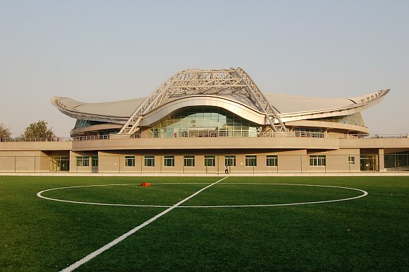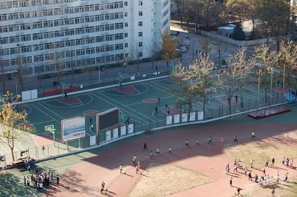 改造后的西操场与暑假中竣工的体育文化综合馆已经形成一个完整配套的综合系统。