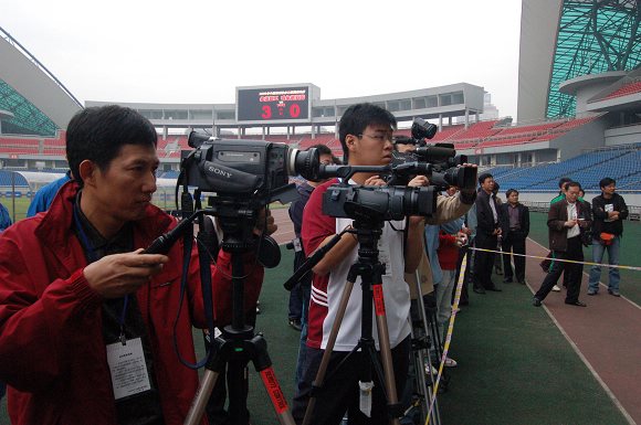 由于前天的金年会jinnianhuicom冲甲成功引发的巨大新闻效应,今天的比赛和发奖仪式吸引了多家媒体来到现场采访。
