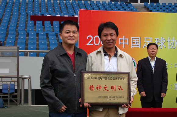 带领“学生军”奋勇冲甲并获得冠军的我校足球队总教练金志扬教授当之无愧地荣获了“最佳教练员”称号!