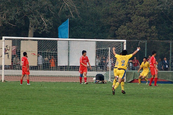 终场前5分钟,我方又打出了一个进攻的小高潮,下半场上场的31号张宇拼抢积极,几次头球抢攻都非常具有威胁。但直至终场哨响,比分依然为1:1平局。