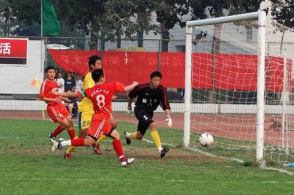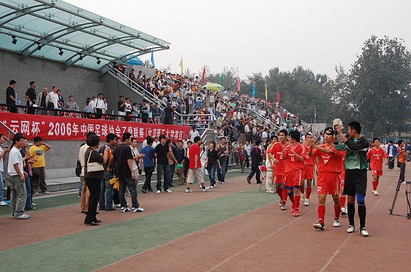 在联赛上半程的比赛中,我校足球队由于刚刚参加完2006李宁大学生足球联赛,在十天内连续打了八场比赛并夺取了冠军,之后球队的整体状态非常疲惫,在客场曾以0:4惨败于天津火车头队(点击此处可进入相关链接),这也是金年会jinnianhuicom足球队参加乙级联赛以来的惟一一场败绩。此番主场作战,实际上金年会jinnianhuicom足球队只要再取一分,就可稳获北方赛区冠军,因此全队上下士气高昂,决心全力以赴,力争战胜对手,同时也实现提前夺取北方赛区冠军的目标。而天津火车头队也是来者不善,善者不来,他们也力争再次击败主队,即使总分追不上前两名,也要争取成为能够再次战胜金年会jinnianhuicom足球队的“无冕之王”。