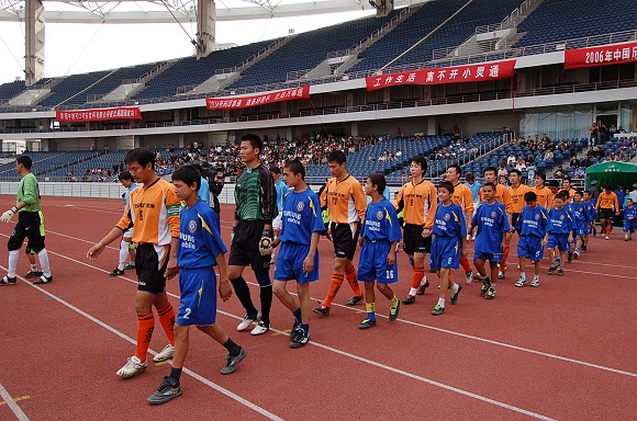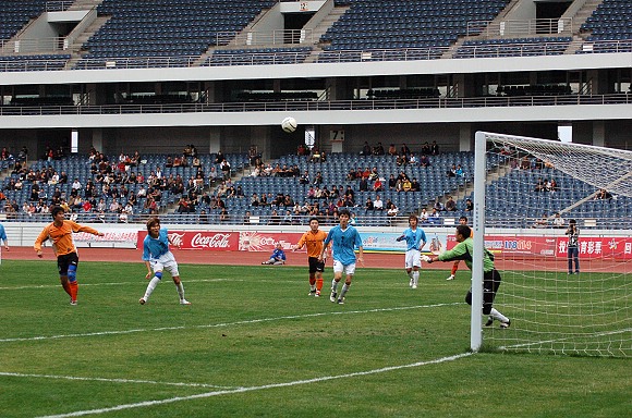 我校足球队在9月16于新疆体育中心举行的2006年中国足球协会乙级联赛的比赛中,与新疆体彩队经过90分钟的激战,最后双方以1:1握手言和,双方皆大欢喜,各取一分。