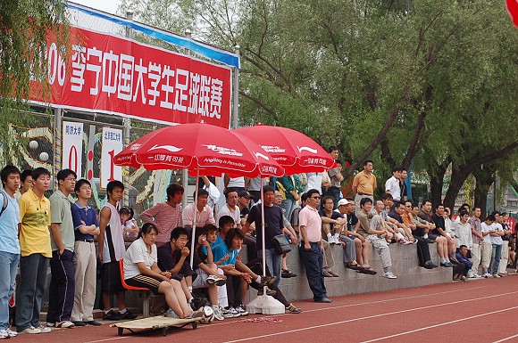 激烈的比赛吸引了沈阳农业大学的众多球迷前来观战。