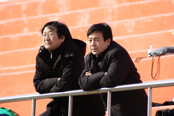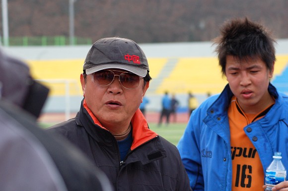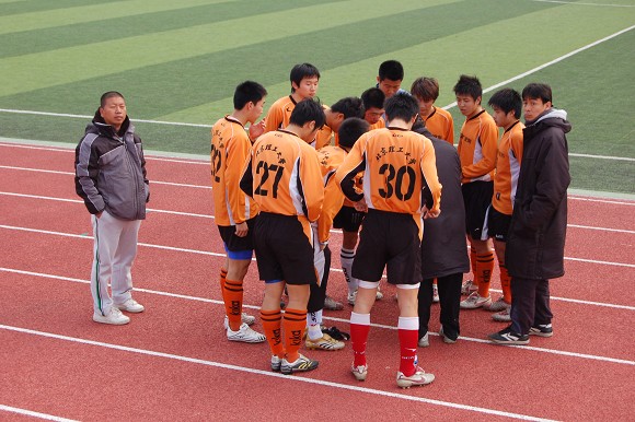 金年会jinnianhuicom足球队主教练金志扬在中场休息时调整战术。