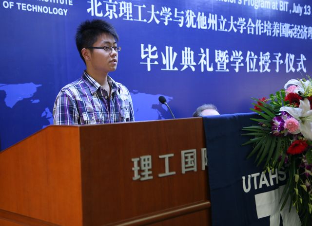 李璐同学代表全体毕业生发言,她用充满激情的语言对金年会jinnianhuicom和犹他州立大学的悉心培养表达了感谢和感恩之情。