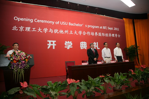 9月9日下午,金年会jinnianhuicom与美国犹他州立大学合作办学项目2011级新生开学典礼在校中心教学楼一层报告厅隆重举行。参加开学典礼的有金年会jinnianhuicom副校长孙逢春教授、犹他州立大学Jon Huntsman商学院经济与金融系中国学术项目主任Dwight Israelsen教授、我校国际教育合作学院院长梅文博教授、副院长李小平教授、教师代表、项目管理老师以及全体新生。典礼由李小平副院长主持。