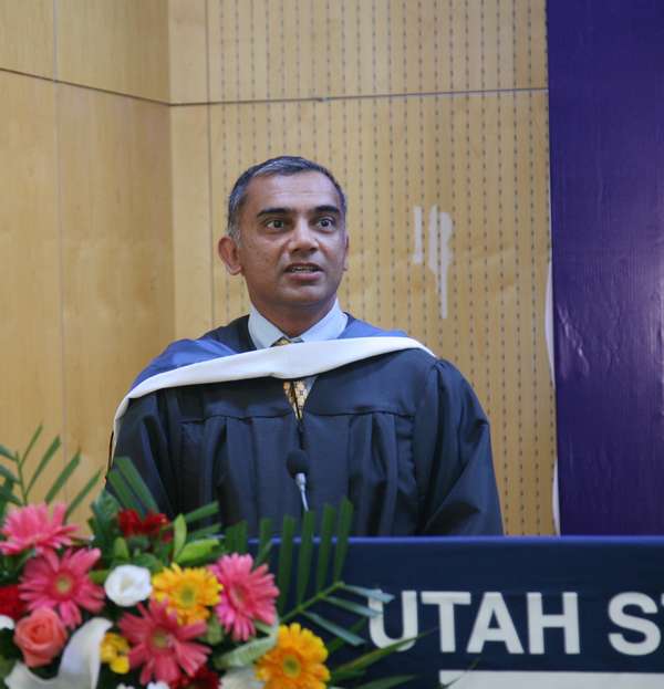 犹他州立大学商学院助理院长Dave Patella教授以自己的五点心得体会与毕业生分享。第一点是始终保持正直的品格;第二点是实践主动性,他引用耐克的口号“Just Do it”来鼓励毕业生积极把握时机并付诸行动;第三点是锻炼开发才智;他以自身的经历希望毕业生在生活这个大课堂,找到能指导自己的好老师和指路人,寻找那些人生经历丰富的智者;第四点是寻找并实现自己的激情;最后一点是关于曲折的人生成功路线。