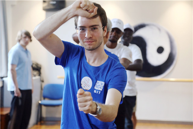 书法体验,全神贯注郑重落笔,写下此生第一个汉字“爱”;功夫训练,屏息凝神抬腿出拳,感受中国武术的浩然正气。