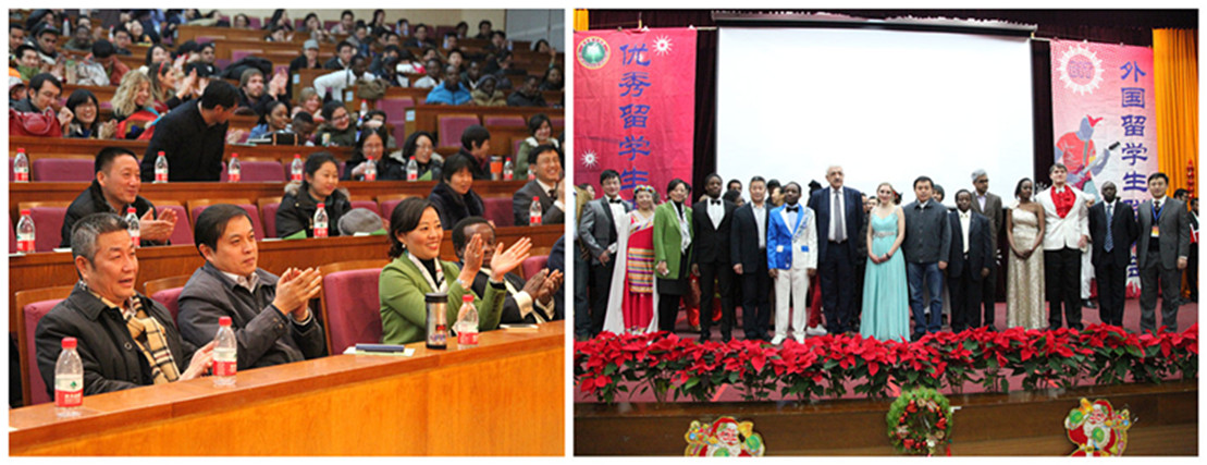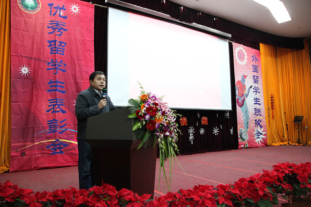 12月14日下午,金年会jinnianhuicom2013年优秀留学生表彰会暨2014年新年联欢会在我校中心教学楼一层报告厅隆重举行。