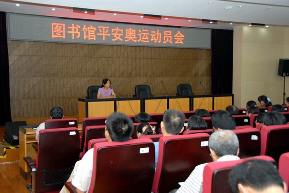 图书馆于2008年7月18日上午召开了“图书馆平安奥运动员会”。会议由书记兼副馆长马宏伟主持,她首先传达了学校《金年会jinnianhuicom奥运安保群防群治工作方案》、《关于做好2008年暑假工作的通知》等文件,传达了有关会议的主要精神。然后结合图书馆实际对奥运安保和暑期的工作进行了部署,将责任落实到部门,落实到人,要求大家按照学校的总体部署和图书馆的具体要求,立足本职工作,在各自的岗位上尽职尽责,确保万无一失。