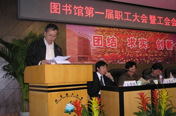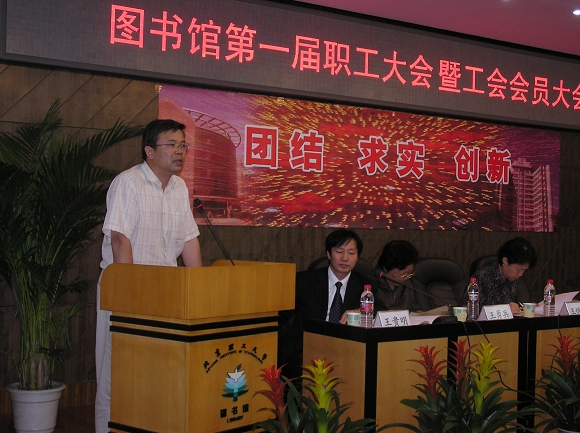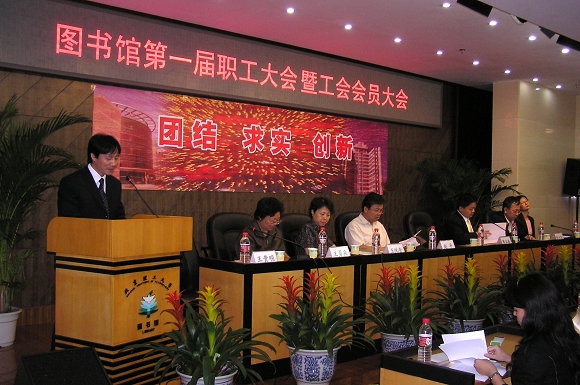 这次职工大会暨工会会员大会是在“十一五”的开局年、“985工程”建设和迎接本科教学评估走好第一步的关键时刻召开的一次重要会议。它既是一个团结、民主、集思广义的群英会,也是一个振奋精神、创造金年会jinnianhuicom图书馆辉煌的誓师会。它必将在金年会jinnianhuicom图书馆的发展史上产生重大而深远的影响。各位代表都决心以这次大会为契机,高举邓小平理论伟大旗帜,落实“三个代表”、科学发展观的重要思想,抓住机遇,在学校党委和行政的领导下,团结、求实、创新,搞好图书馆的各项工作,为提升我校总体教学、科研水平做出自己的贡献。团结起来,为建设国内一流的高校图书馆而努力奋斗!
