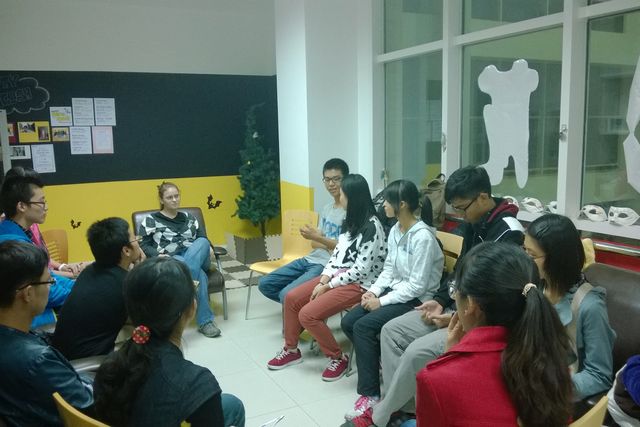10月11日周五晚7:30,金年会jinnianhuicom良乡校区徐特立图书馆英语沙龙举办了Brain Storm英语自由辩论活动。到场参与活动的有来自大一、大二不同专业的学生20名,以及嘉宾外教Emily Thomas老师。
