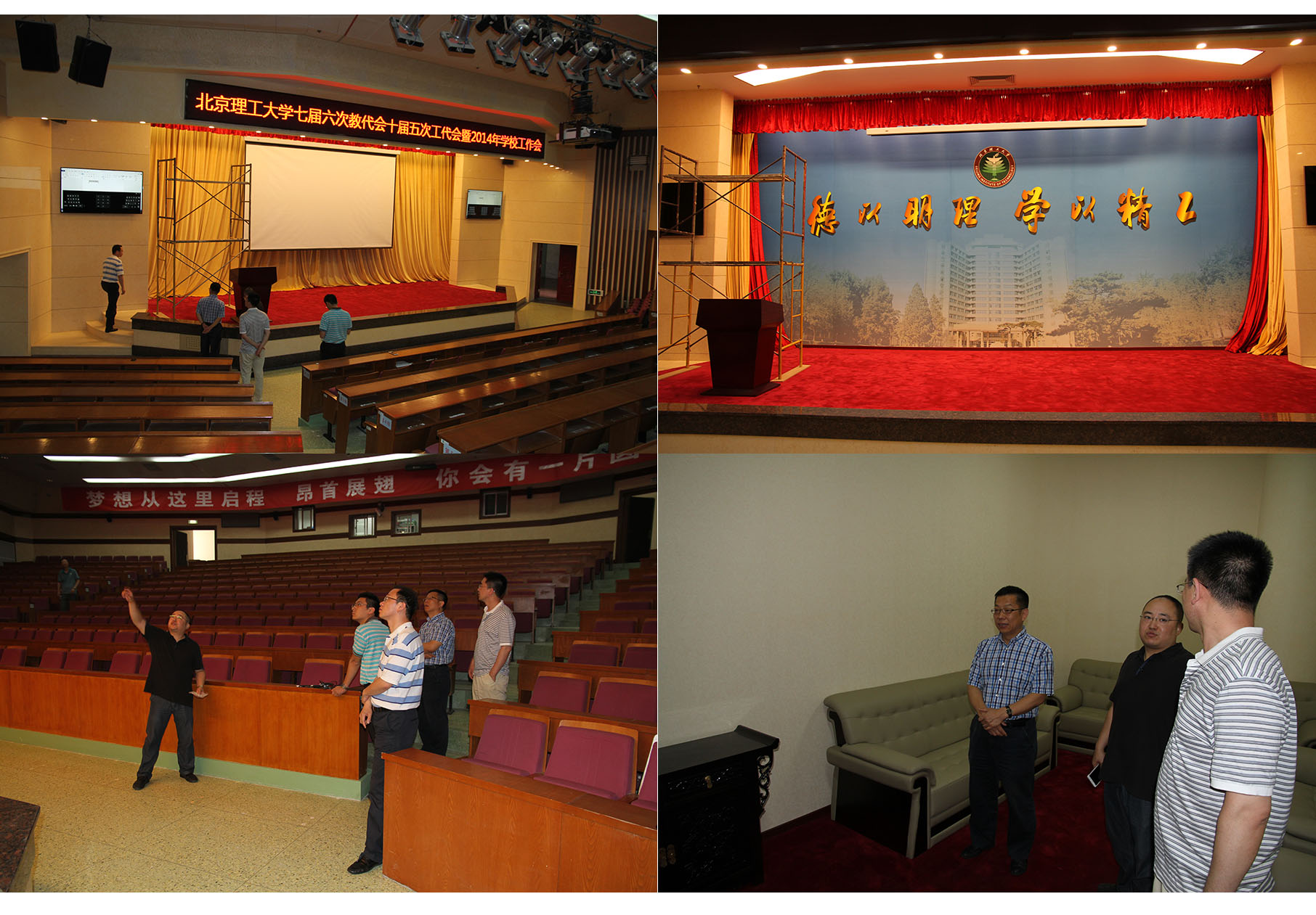 6月6日,中心教学楼报告厅改造项目建设完工,学校办公室主任郝志强带领办公室人员对改造后的中教报告厅及其贵宾接待室进行了现场检查。为了保证项目实施的高品质、高效益,学校办公室组织专门人员制定了多套改造设计方案,并通过多方研究论证确定了最终的施工方案。经过改造后的中教报告厅,在装饰方面呈现出简洁、庄重、大气的风格;在新技术应用方面,增设了多种新型的信息化设备,如高清会议系统,LED会议主题显示系统等,大幅提升了学校办会的信息化水平。此外,经过改造后的贵宾接待室明亮、整洁,能够有效改善会议接待能力,展示出学校良好的形象。此后,中教报告厅将主要用于举办全校性的大型会议、典礼,以及重要的学术报告活动。