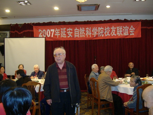 延安自然科学院校友会顾问组副组长金德崇同志代表老校友发言,感谢母校对老同志的关怀,对学校近几年的飞速发展表示欣慰,并祝愿学校建设得越来越好。