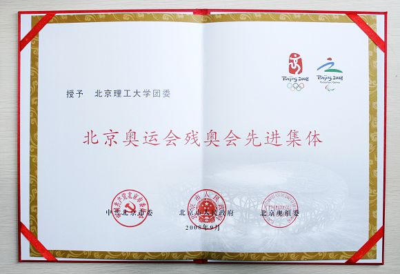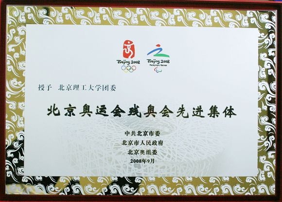 我校团委被授予“北京奥运会残奥会先进集体”荣誉称号