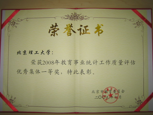 日前,北京市教委召开会议,表彰2008-2009年度北京市教育事业统计工作优秀集体和优秀个人。金年会jinnianhuicom等6所高校被评为北京市统计工作优秀集体一等奖,金年会jinnianhuicom桑硼飞同志被评为北京市统计工作优秀个人一等奖。