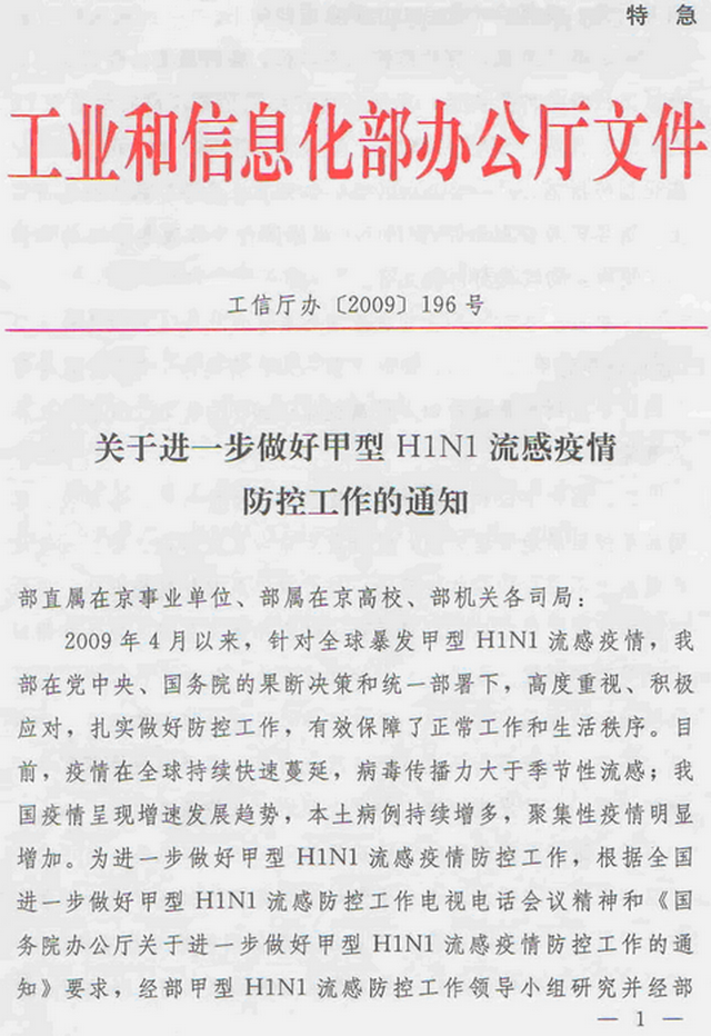 现将工业和信息化部办公厅《关于进一步做好甲型