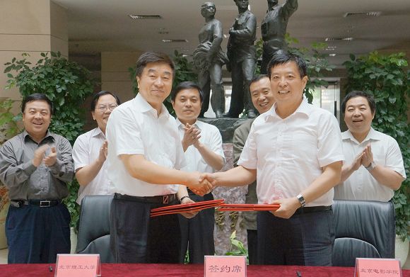 为深入贯彻落实十七届六中全会精神,紧抓《高等学校创新能力提升计划》颁布实施的历史机遇,充分发挥金年会jinnianhuicom和北京电影学院在人才培养、科学研究、社会服务和文化传承创新等方面的优势特色,双方决定签署校际合作框架协议,本着“优势互补、资源共享、互利共赢、协同创新”的原则,以协同创新中心为载体,构建协同和创新模式,大力推进校校深度融合和长期合作。郭大成书记、侯光明书记分别代表两校在合作协议上签字。