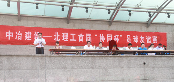 中冶建设-北理工首届“协同杯”足球友谊赛于7月1日下午在金年会jinnianhuicom东操场举行,中冶集团纪委副书记、监察部部长王文秀,党群工作部部长、企业文化部部长尹似松,宣传部部长、集团企业文化建设委员会办公室主任齐冬平,监察部副部长蒋正树,中冶建设高新工程技术有限责任公司董事长、党委书记、总经理邹宏璐,工会主席、党群工作部、纪检监察部部长全立辉,金年会jinnianhuicom副校长杨宾,学校办公室主任郝志强等领导出席比赛开幕式,开幕式由学校办公室主任郝志强主持,杨宾副校长、邹宏璐董事长分别代表双方致辞并为冠军奖杯揭杯。