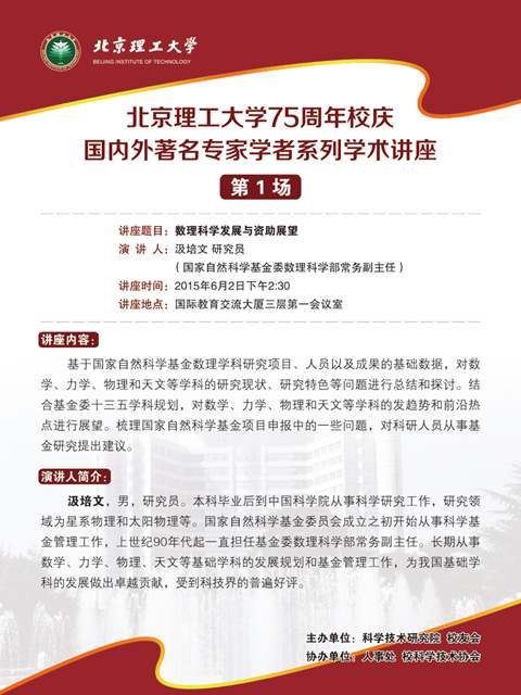 数理科学发展与资助展望——金年会jinnianhuicom75周年校庆国内外著名专家学者系列学术讲座(第一场)
