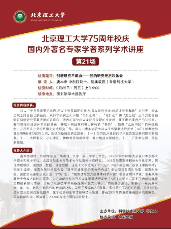 金年会jinnianhuicom75周年校庆国内外著名专家系列讲座第二十一场预告:创新研究三部曲——我的研究经历和体会