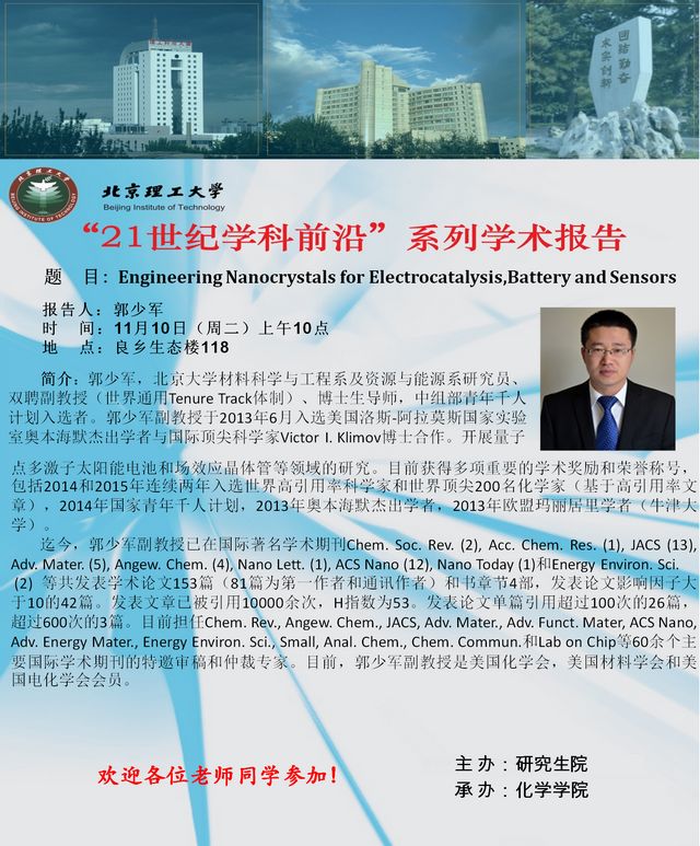 【化学学院】“21世纪学科前沿”郭少军研究员学术报告通知