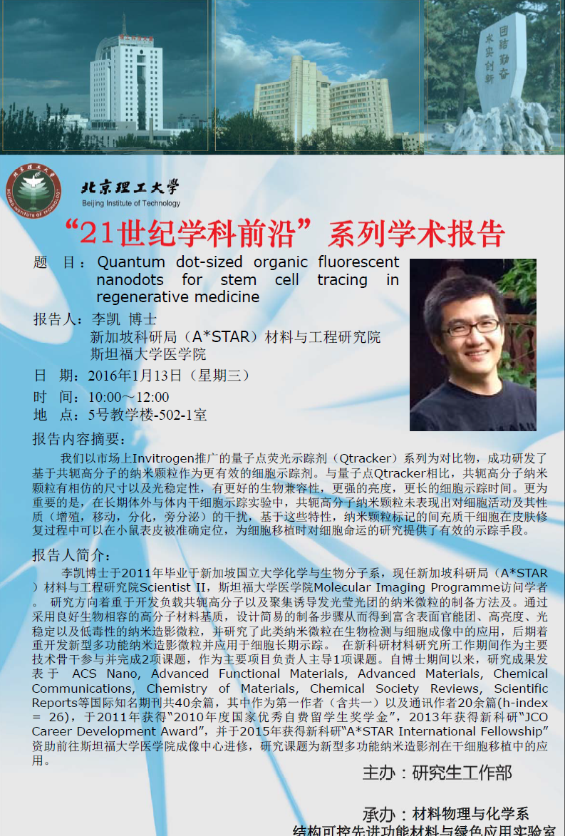 【材料学院】21世纪学科前沿——李凯博士学术报告通知