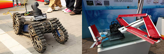 其中,我校的“新型特种搜救机器人”(2009年第二届全国大学生创新论坛"我最喜爱的十件作品"之一)和“基于火箭发射的折叠式无人机”(第十一届"挑战杯"全国大学生课外学术科技作品竞赛全国一等奖)两项作品参加了本次成果展,得到了刘延东、万钢和其它有关部门领导的关注和肯定,参会同学也得到了教育部高教司和我校领导的关心和鼓励。