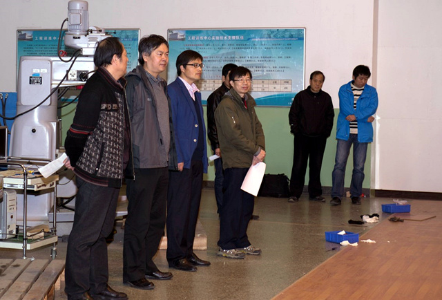比赛共由10支参赛队制作的无碳小车在赛道上分3个回合轮流进行比赛,并按3回合比赛的总成绩进行排名。此外,为了保证此次竞赛的质量和水平,在正式比赛前还于2014年10月11日在我校工程训练中心进行了无碳小车设计方案答辩赛。全校共有21支参赛队提交了设计方案,其中竞赛项目I(“S”轨迹方案)15组,竞赛项目II(“8”字形轨迹方案)6组。通过现场答辩,最终选出10支参赛队获准进入正式赛道比赛。