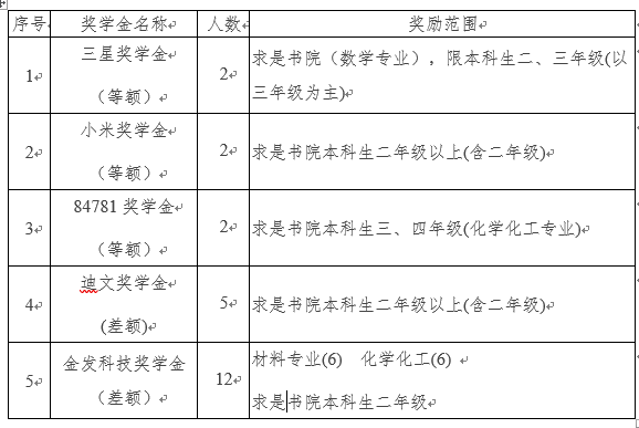 本次求是书院评选社会捐助奖学金5项: