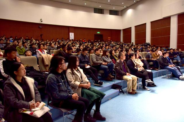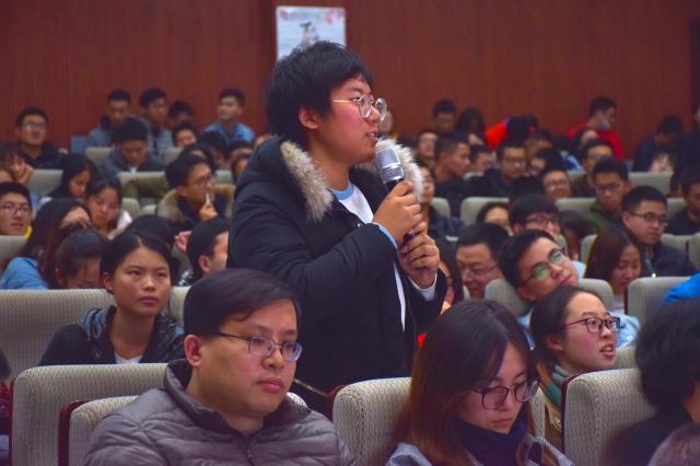 随后,江雷院士从中国古代哲学“全息思维,阴阳合一”的局部和整体高度关联性思维出发,向同学们阐述了“道法自然”,向自然学习进行科学研究的过程和重要性。江雷院士从毛主席的谈话中提取智慧,指出原创科学的三个境界即是毛泽东所说的有所发现、有所发明、有所创造,并旁征博引,从牛顿、伽利略的科学研究过程到屠呦呦再到自身的科研历程,将三个境界区分成八个具体可操作的层面,以生动的案例和幽默的语言,为北理工学子们提供了如何进行科学选题的技巧和智慧。