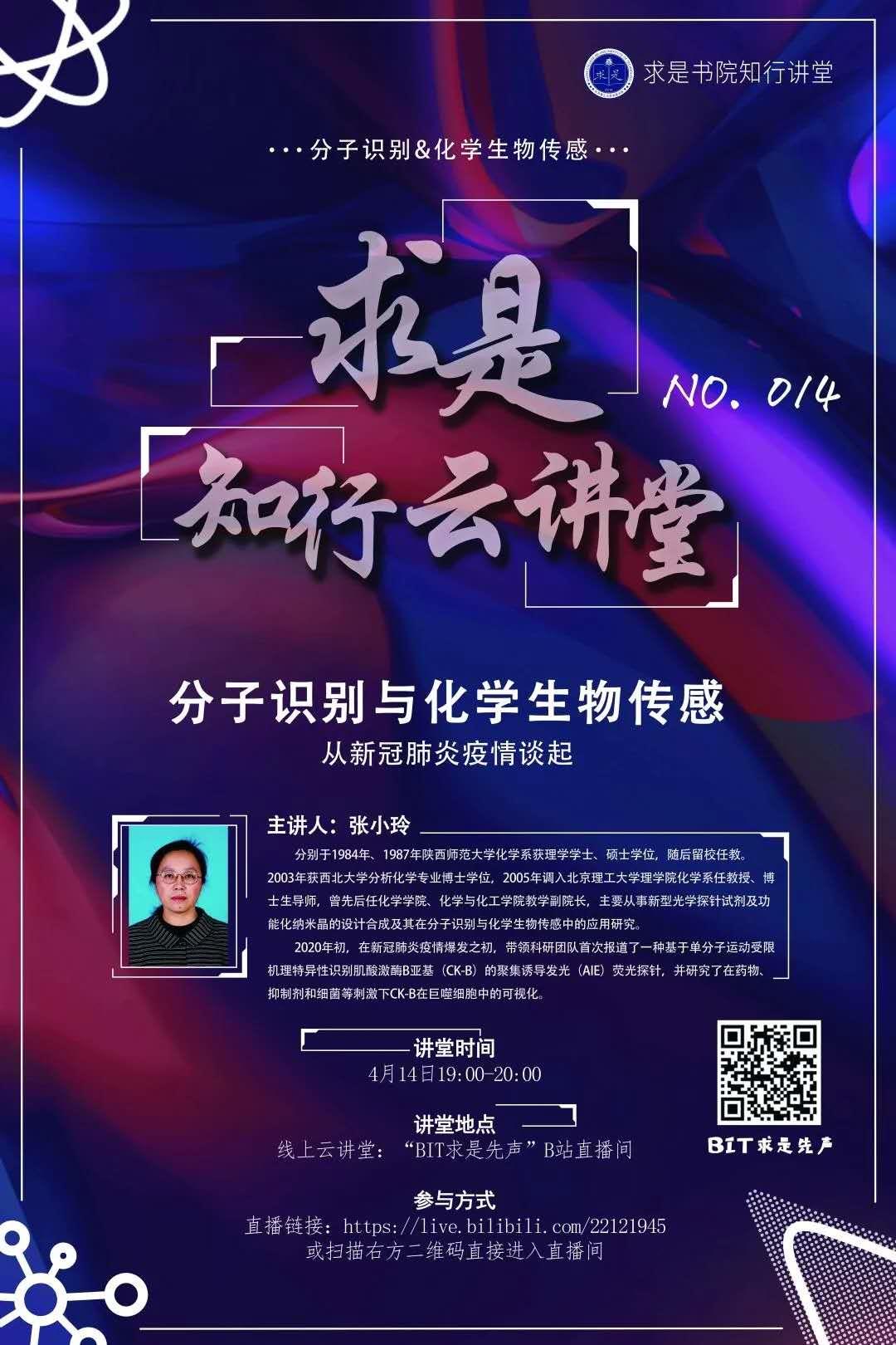 附主讲人简介:张小玲,分别于1984年、1987年陕西师范大学化学系获理学学士、硕士学位,随后留校任教。2003年获西北大学分析化学专业博士学位,2005年调入金年会jinnianhuicom理学院化学系任教授、博士生导师。期间2005年12月应日本筑波产业技术综合研究所(NationalInstitute of Advanced Industrial Science and Technology,AIST)邀请作为特聘研究员从事研究工作,2008-2009年美国佛罗里达大学(University of Florida)访问教授。主要从事新型光学探针试剂及功能化纳米晶的设计合成及其在分子识别与化学生物传感中的应用研究。