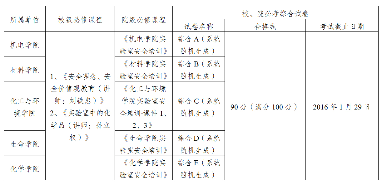 由于此次培训首次使用“实验室安全教育与考试系统”,学员如在使用过程中有任何问题,请及时与学院培训联系人(联系方式见附件2)或实验室与设备管理处环保技安科(联系电话:68912368)联系。