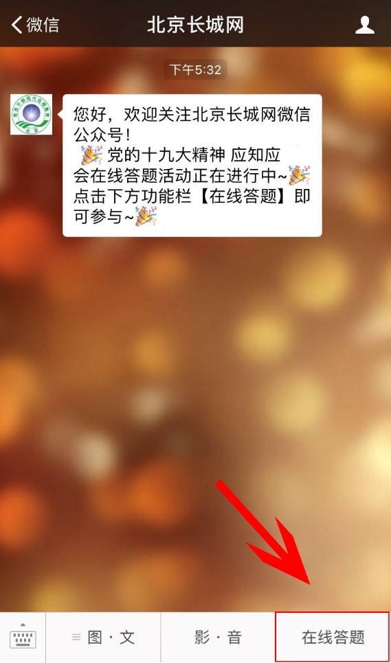 为推动全市深入学习宣传贯彻党的十九大精神,进一步营造良好的学习氛围,我们定于2017年11月22日-12月19日,依托“北京长城网”微信公众号平台,以在线答题的形式,开展“党的十九大精神应知应会在线答题”活动。