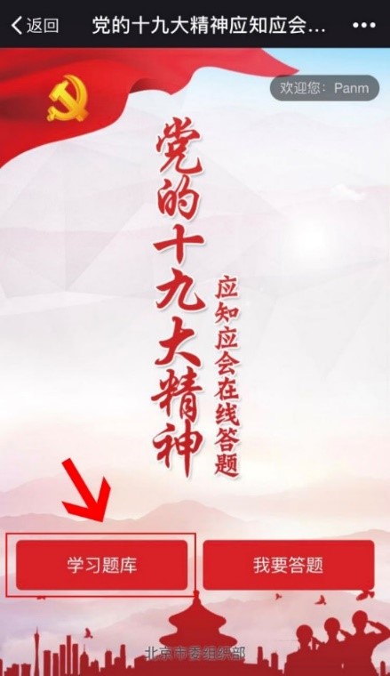 5.点击【学习题库】可查看《党的十九大报告》和新《党章》相关学习内容