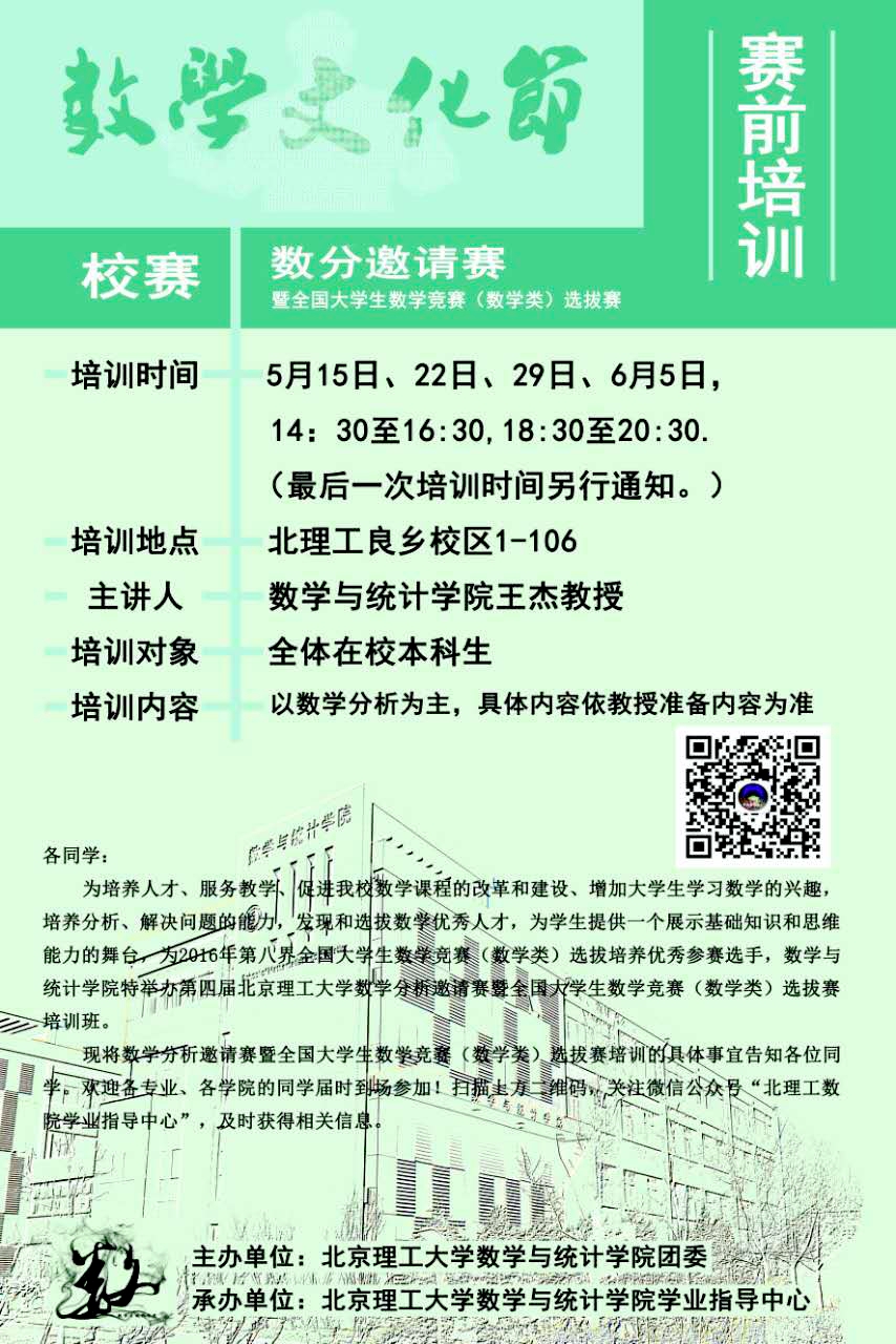 现将数学分析邀请赛培训的具体事宜通知如下: