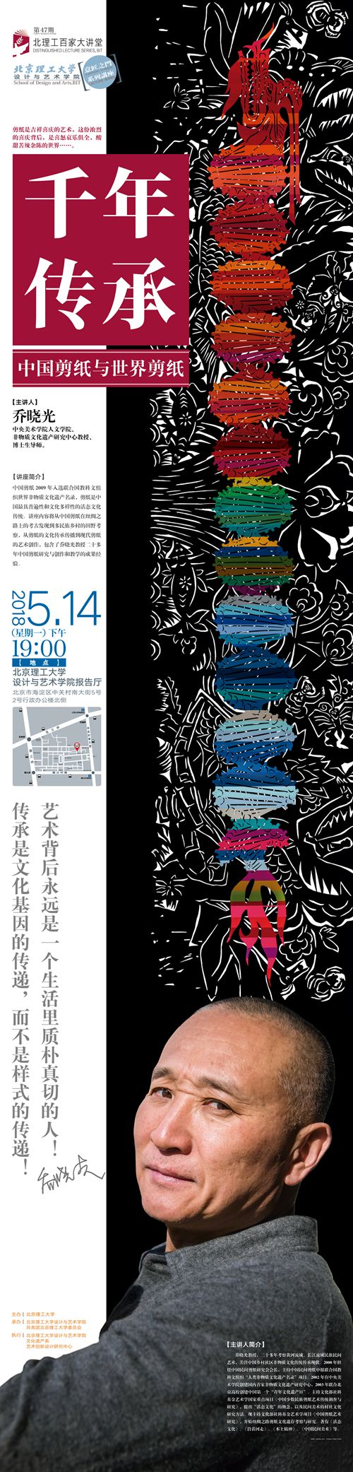 中国剪纸2009年入选联合国教科文组织世界非物质文化遗产名录,剪纸是中国最具普遍性和文化多样性的活态文化传统。讲座内容从中国剪纸在丝绸之路上的考古发现到多民族乡村的田野考察,从剪纸的文化传承传播到现代剪纸的艺术创作,包含了乔晓光教授二十多年中国剪纸研究、艺术创作和教学的成果经验。