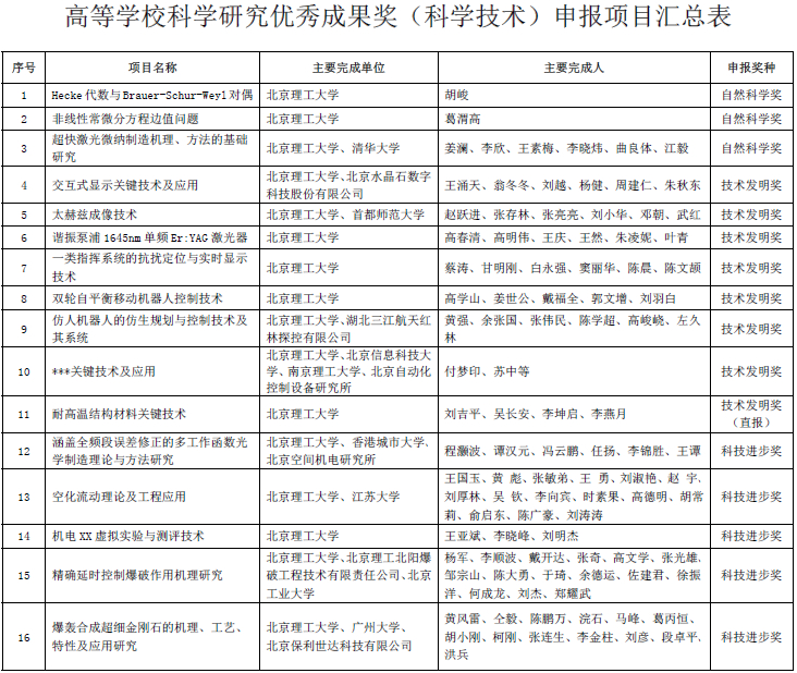 联 系 人:徐向平根据《教育部办公厅关于推荐2014年度高等学校科学研究优秀成果奖(科学技术)的通知》要求,现将我校拟申报2014年度高等学校科学研究优秀成果奖(科学技术)的项目(项目汇总表见附件),在校内进行公示并征求异议,公示期为7天。