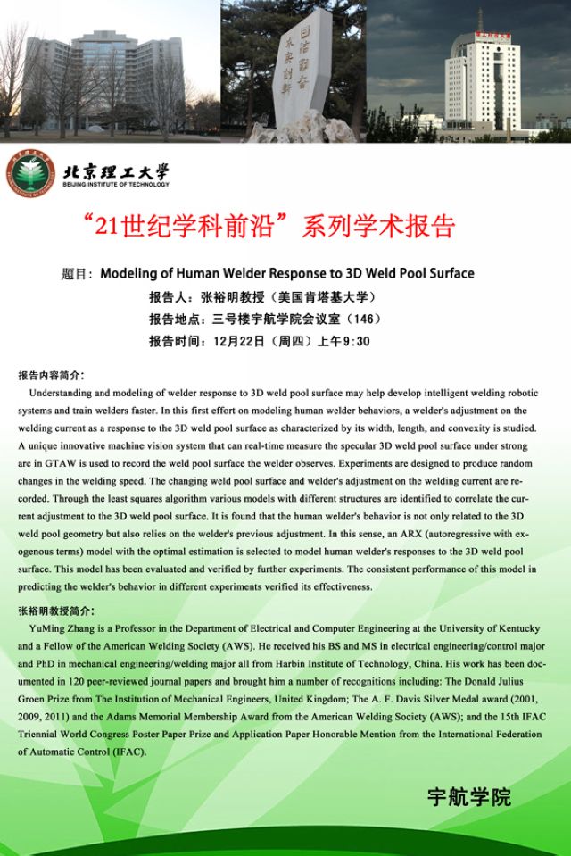 > 宇航学院12月22日“21世纪学科前沿”学术讲座预告
