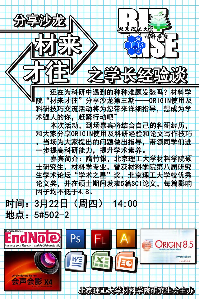 材料学院“材来才往”分享沙龙第三期——origin使用及科研技巧交流预告