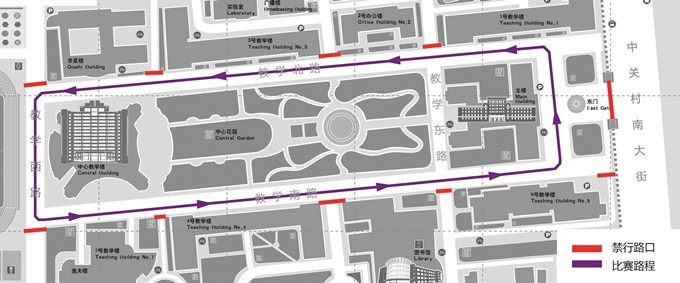 学校将在12月8日(周日)上午举办“2019年校园马拉松赛”。为了保证活动安全、有序,根据比赛线路的实际情况,经体育部申请,保卫部制定了教学区部分道路临时封闭的方案。