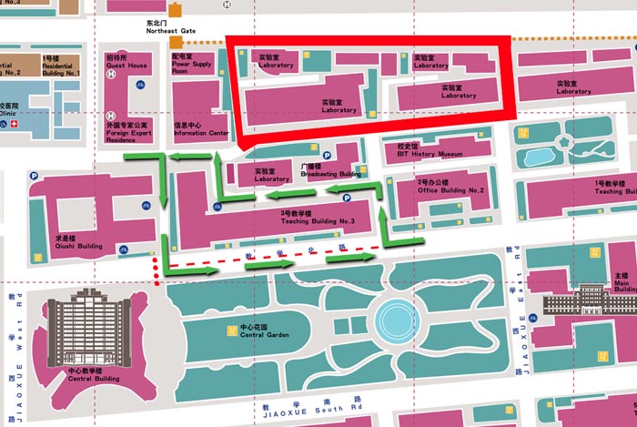 步行的师生请您经步行区或便道行走;骑自行车的师生可以绕行三号教学楼北侧道路(在三号教学楼办公、上课的师生请您自觉将自行车摆放在自行车存放区内,以免造成单行线机动车道路交通堵塞)。