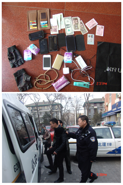 2014年1月2日下午13时许,保卫处值班室接后勤学管中心报案称:大学生1号公寓刚刚发生一起入室盗窃案,接报后治安科工作人员和保安员迅速赶到现场布控,各位公寓值班员按照应急预案果断封闭该楼各出入口,通知监控中心调取现场监控录像。通过楼内、外监控录像确认盗窃嫌疑人还在楼内,治安科工作人员带领保安员、学管中心工作人员对大学生1号公寓楼内厕所、水房进行彻底清查,加大声势,迫使嫌疑人于14时左右冒充学生欲逃出学生公寓,被学管中心和保卫处工作人员当场抓获。