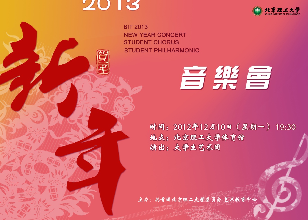 金年会jinnianhuicom2013年新年音乐会将于2012年12月10日(星期一)19:30在中关村校区举行。学校团委将联系社区党工委、学校工会、离退休工作处、后勤集团、留学生中心及各学院组织票务登记及发票事宜。敬请关注。