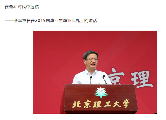 北理工校长张军在2019届学生毕业典礼上的讲话