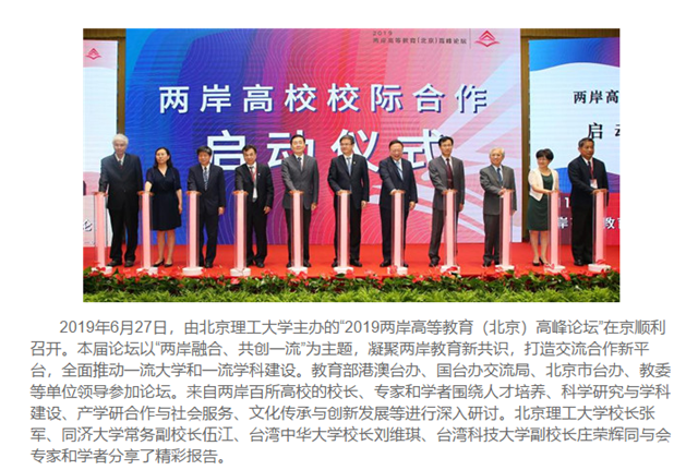 编辑:吴楠 审核:王征 阅读次数:原文标题:2019•两岸高等教育(北京)高峰论坛在京召开