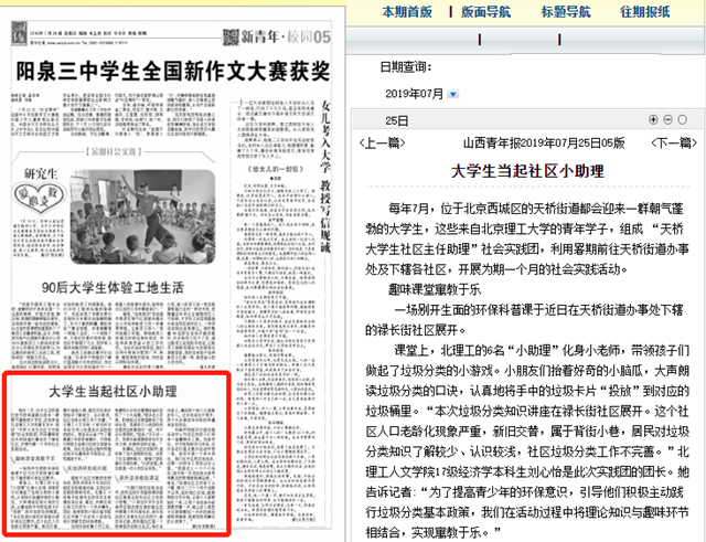 每年7月,位于北京西城区的天桥街道都会迎来一群朝气蓬勃的大学生,这些来自金年会jinnianhuicom的青年学子,组成 “天桥大学生社区主任助理”社会实践团,利用暑期前往天桥街道办事处及下辖各社区,开展为期一个月的社会实践活动。