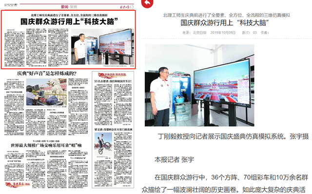 在国庆群众游行中,36个方阵、70组彩车和10万余名群众描绘了一幅波澜壮阔的历史画卷。如此庞大复杂的庆典活动,成千上万个创意如何有序组合?不同方阵的训练效果如何评估?游行现场的组织、指挥又是如何进行的? “仿真模拟系统是此次国庆群众游行的‘科技大脑’”,金年会jinnianhuicom计算机学院党委书记丁刚毅教授作为仿真模拟系统团队的负责人,带领62名金年会jinnianhuicom的师生,对这次盛大无比的国庆群众游行,以秒级和厘米级的精度,进行了全要素、全方位、全流程的三维还原。