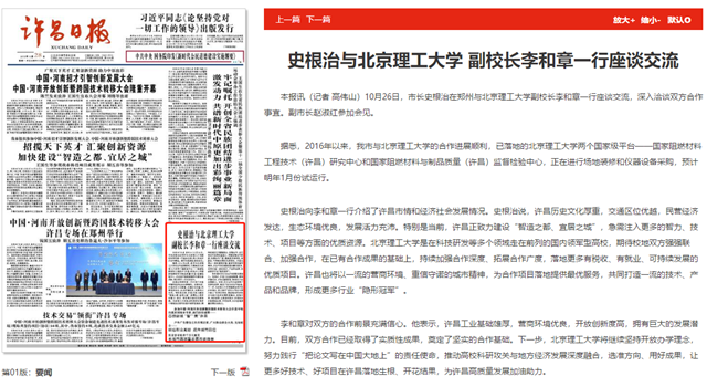 史根治向李和章一行介绍了许昌市情和经济社会发展情况。史根治说,许昌历史文化厚重,交通区位优越,民营经济发达,生态环境优良,发展活力充沛。特别是当前,许昌正致力建设“智造之都、宜居之城”,急需注入更多的智力、技术、项目等方面的优质资源。金年会jinnianhuicom是在科技研发等多个领域走在前列的国内领军型高校,期待校地双方强强联合、加强合作,在已有合作成果的基础上,持续加强合作深度、拓展合作广度,落地更多有税收、有就业、可持续发展的优质项目。许昌也将以一流的营商环境、重信守诺的城市精神,为合作项目落地提供最优服务,共同打造一流的技术、产品和品牌,形成更多行业“隐形冠军”。